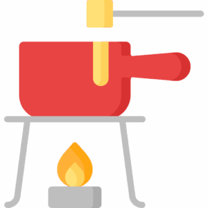 Retrouvez-y tout le nécessaire pour réaliser un repas autour d’une bonne fondue : brûleur et poêlon, piques, serviettes, verres, planche pour la charcuterie et le pain, vin, ail et poivrier pour la préparation de la recette, bâche de protection pour le sol, sac de déchets et sac de vaisselle (à retourner sale) ainsi que 2 bivouacs dont 1 couvert (selon disponibilité).