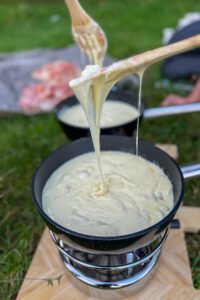 Découvrez notre belle région en dégustant une excellente fondue au fromage en pleine nature !